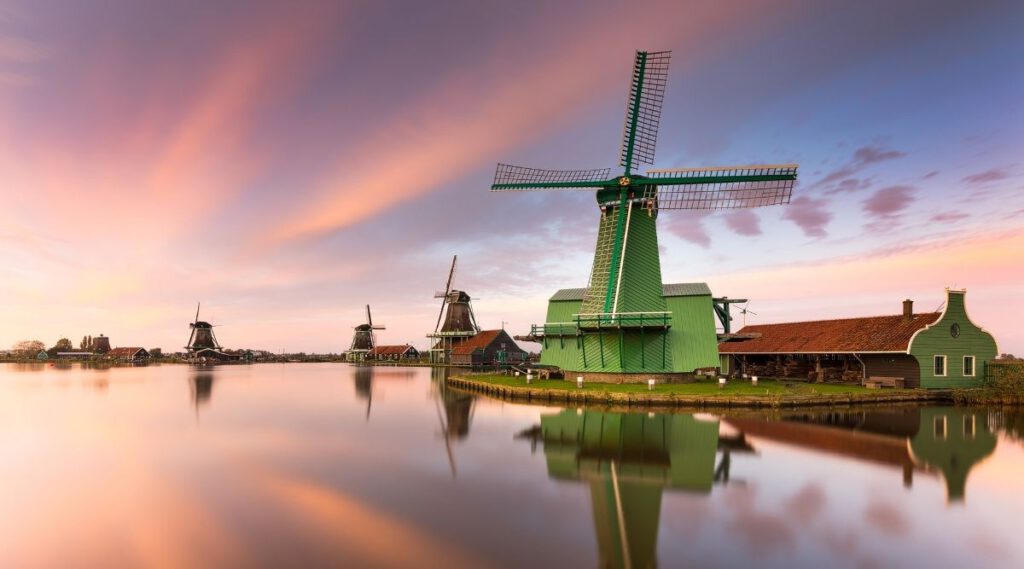 Cách trung tâm Amsterdam chỉ 17 phút train, làng cối xay gió Zaanse Schaans là một trong những điểm tham quan nổi tiếng bậc nhất của Hà Lan. Ngôi làng này trước đây là một công xưởng rất lớn gồm cả ngàn cối xay gió. Các cối xay gió ở đây được xử dụng để chế xuất hương liệu, cắt ghỗ và sản xuất màu sơn của công ty lớn nhất trong lịch sử loài người – VOC. Ngày nay khi ghé thăm làng, bạn sẽ được nhìn ngắm và ghé thăm vài cối xay gió còn sót lại được tu dưỡng rất kỹ lưỡng. Ngoài ra ở đây còn có nhà máy phô mai, xưởng làm guốc gỗ, xưởng gia công thùng ghỗ và cả bảo tàng lịch sử về ngôi làng nữa.