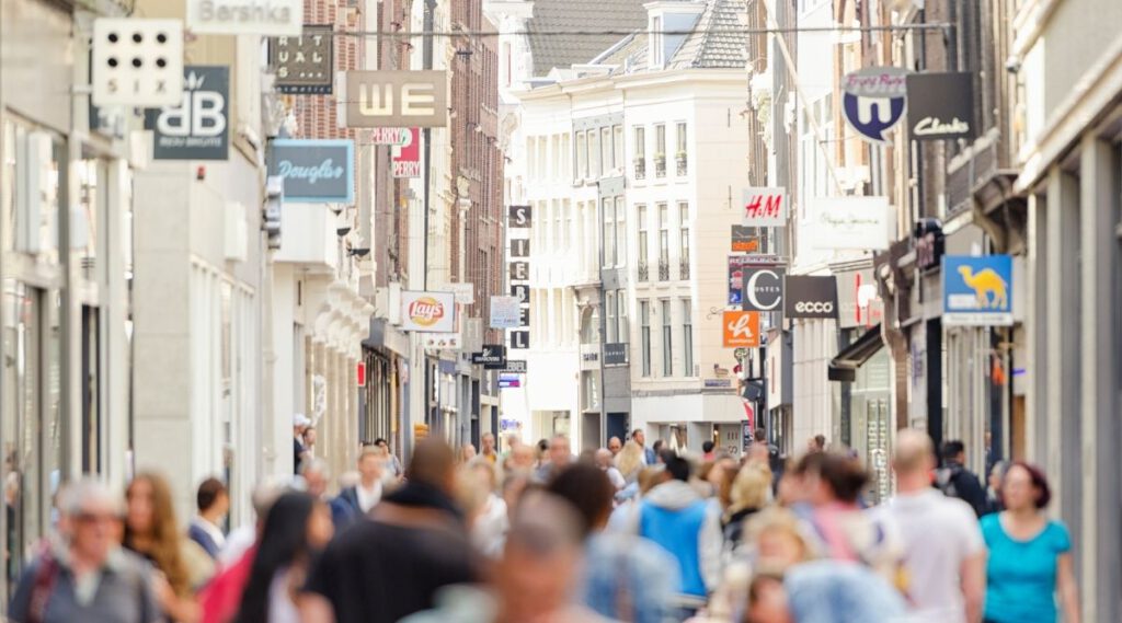 Các con phố mua sắm tấp nập thì có Nieuwendijk, Kalverstraat và Damrak. Ba con phố này nằm sát nhau. Bạn bước ra khỏi cổng nhà ga trung tâm Amsterdam là đã đến Damrak rồi đấy.